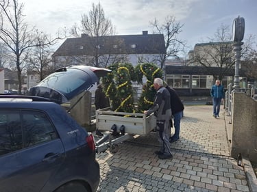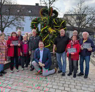 Bürgermeister Christian Zuber unterstützte uns beim Aufstellen dieses Blickfanges tatkräftig und bedankte sich im Anschluss für dieses wunderschöne Schmuckstück, welches einmal mehr die Innenstadt von Münchberg aufhellt.